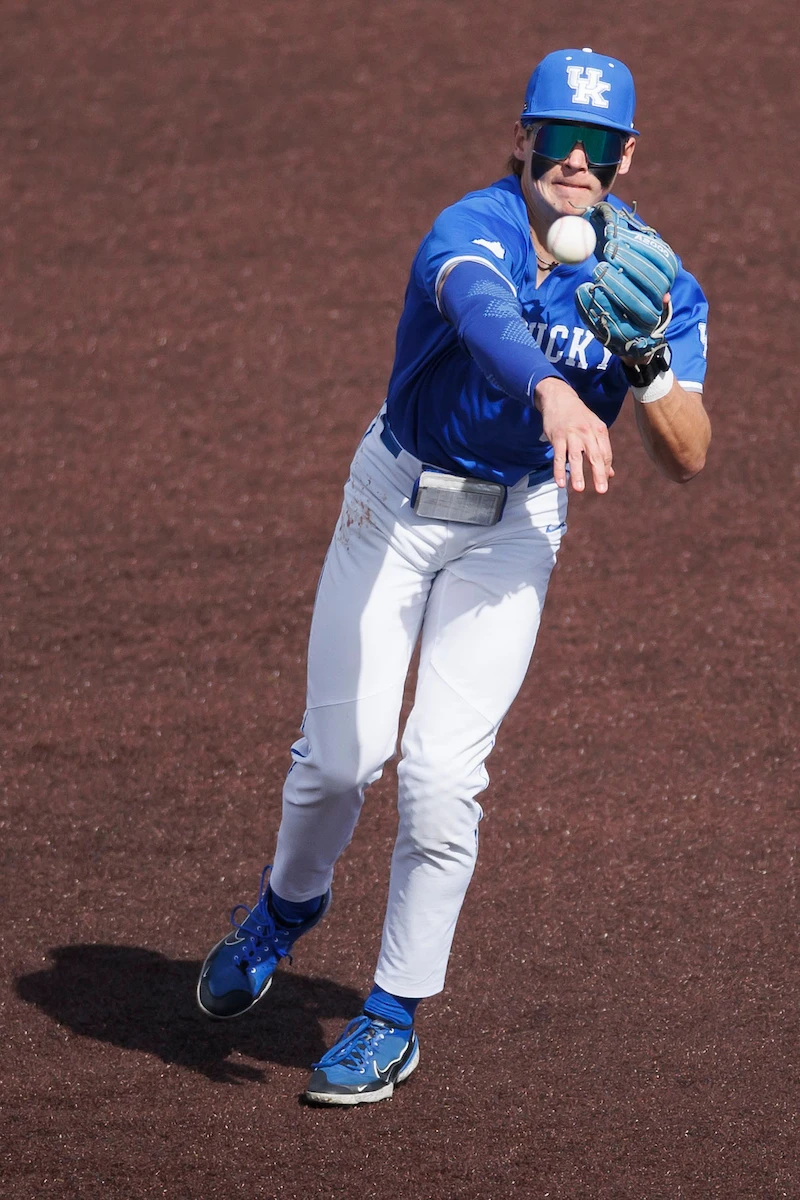 Tyler Bell was one of the most highly touted recruits in the 2024 class. The Frankfort, Illinois native was chosen in the Second Round (No. 66 overall) by the Tampa Bay Rays in the 2024 MLB Draft. Bell, elected to forgo professional baseball (for now) and honor his commitment to the University of Kentucky. Perfect Game, ranked Bell as the #13 Freshman in the country. Bell, an elite fielder, has also shown ability at the plate boasting an impressive .323 average on the season leading into Sunday. Bell’s main ability however lies in defense, with cat like reflexes (pun intended) batters are going to have to EARN the base on anything hit his way.